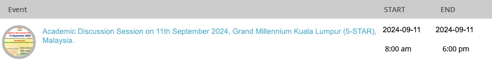 Academic Discussion Session on 11th September 2024, Grand Millennium Kuala Lumpur (5-STAR), Malaysia.